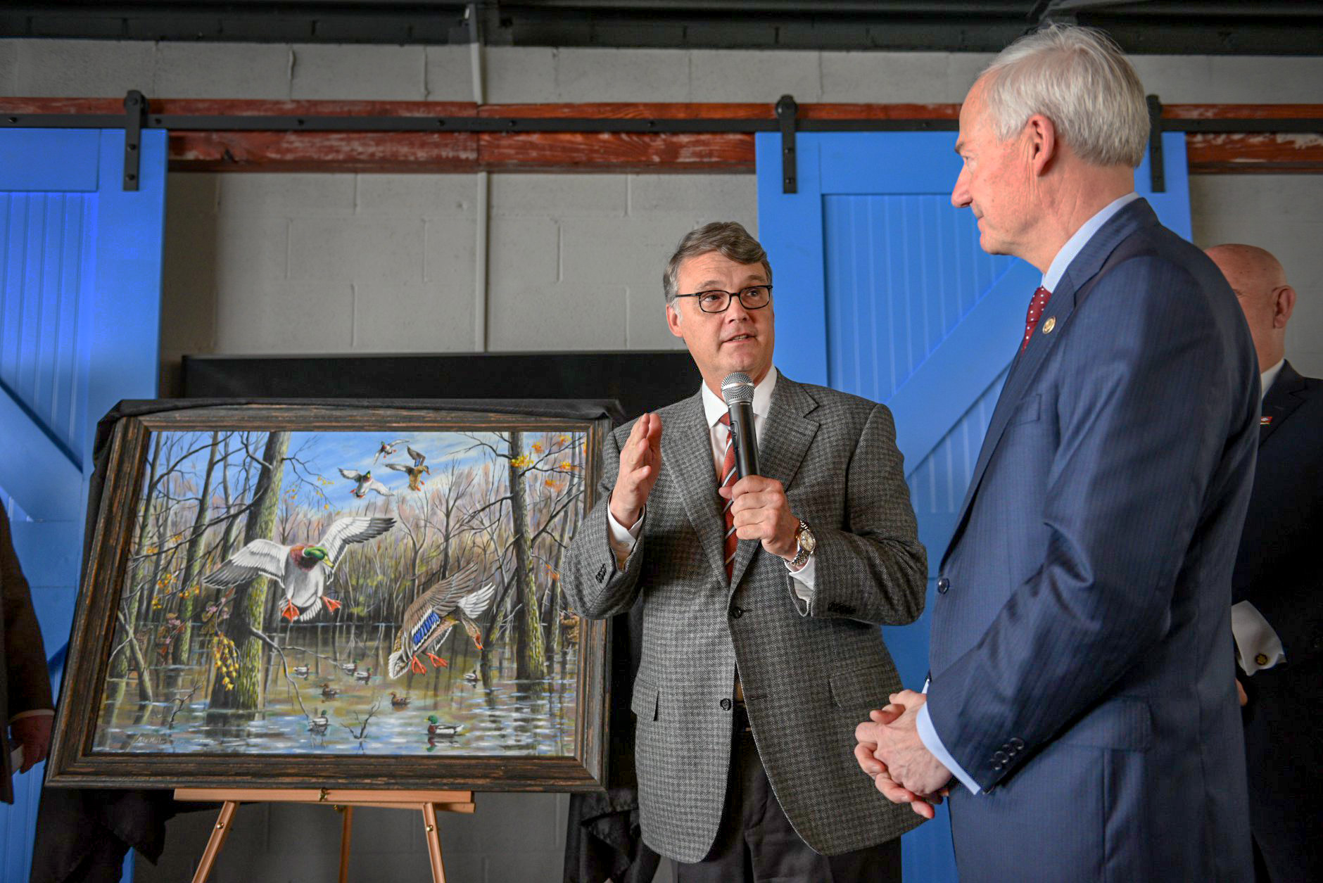 Arkansas Governor Asa Hutchinson Unveils Mike Marlar’s Painting as Official 2019 Arkansas Duck Stamp